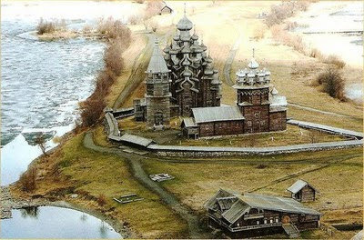 A ilha de Kizhi está localizada no Lago Onega, na Rússia, entre as ilhas Solovki (no mar Branco) e São Petersburgo. E nesta bela região está preservado um conjunto de construções eclesiásticas, na qual se tornaram símbolos da arquitetura de madeira no país.